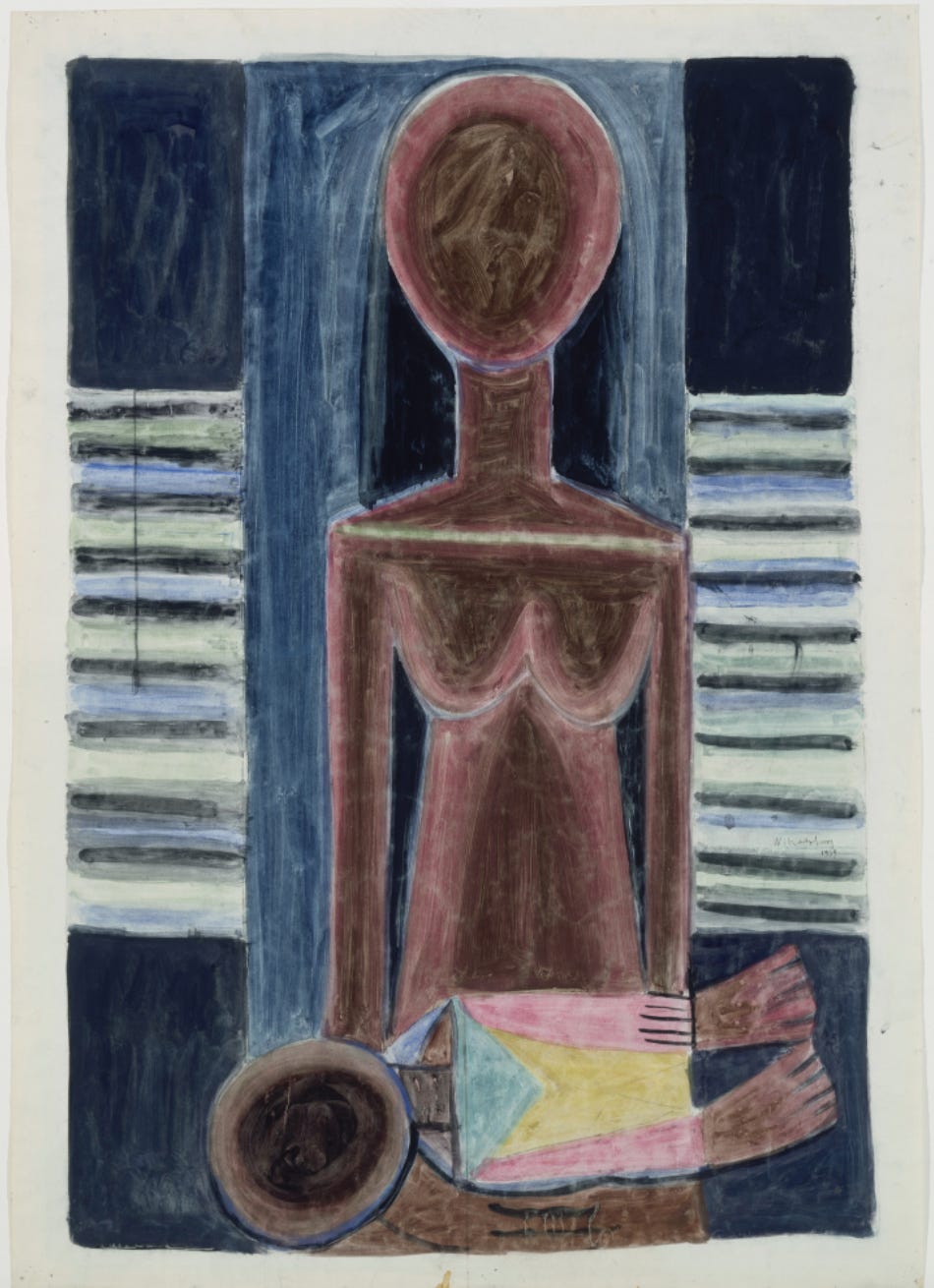 Mother and Child, 1939, Gouache on paper, 41” x 29"